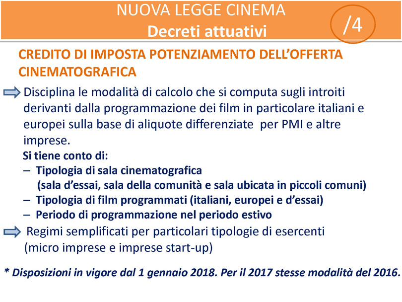 - Slide n.4 Credito di imposta sulla programmazione cinematografica.